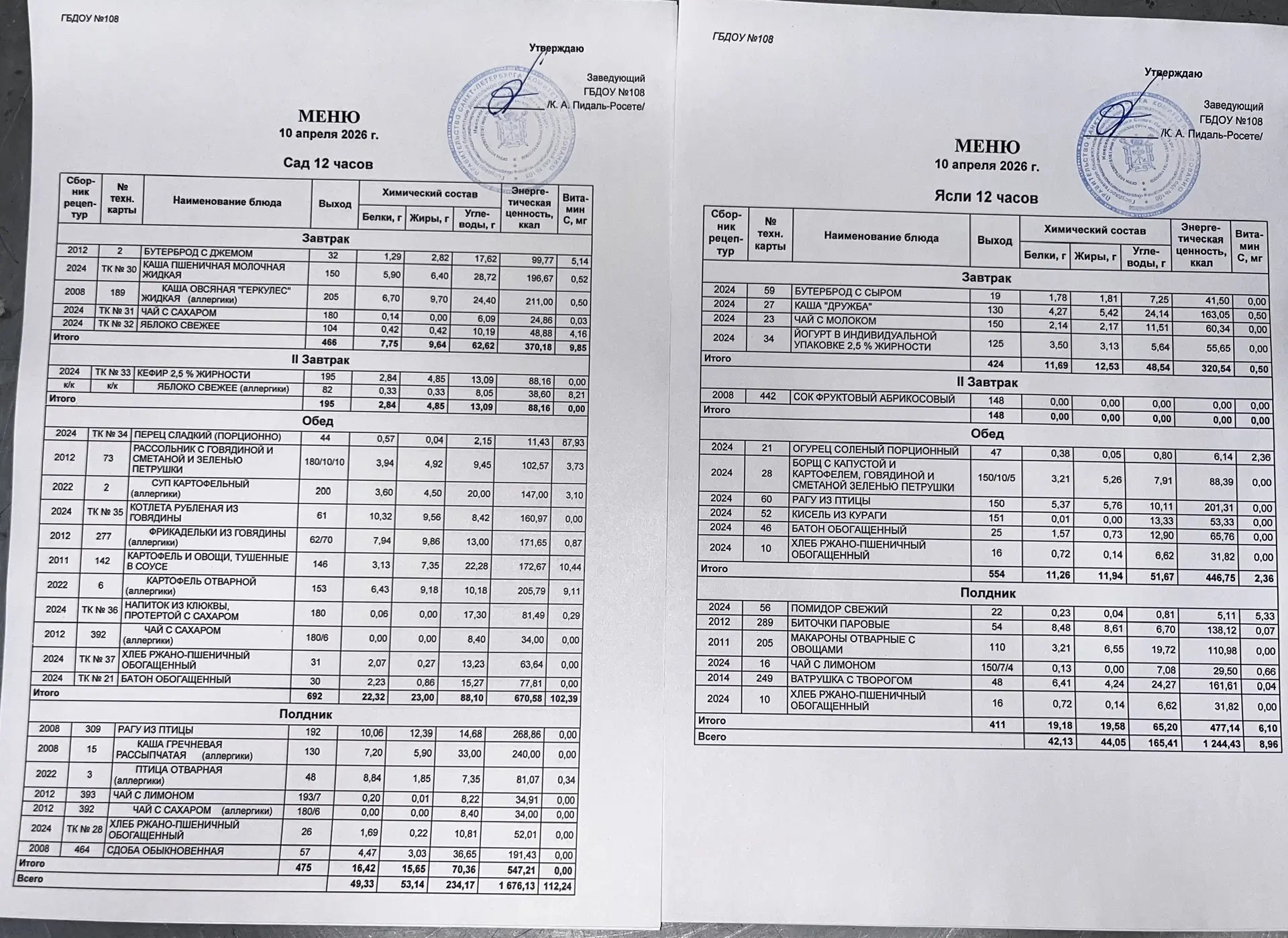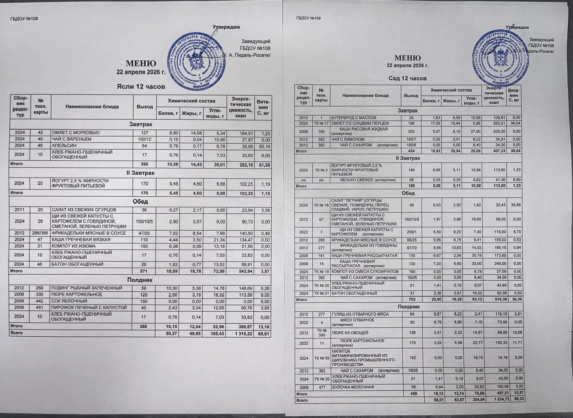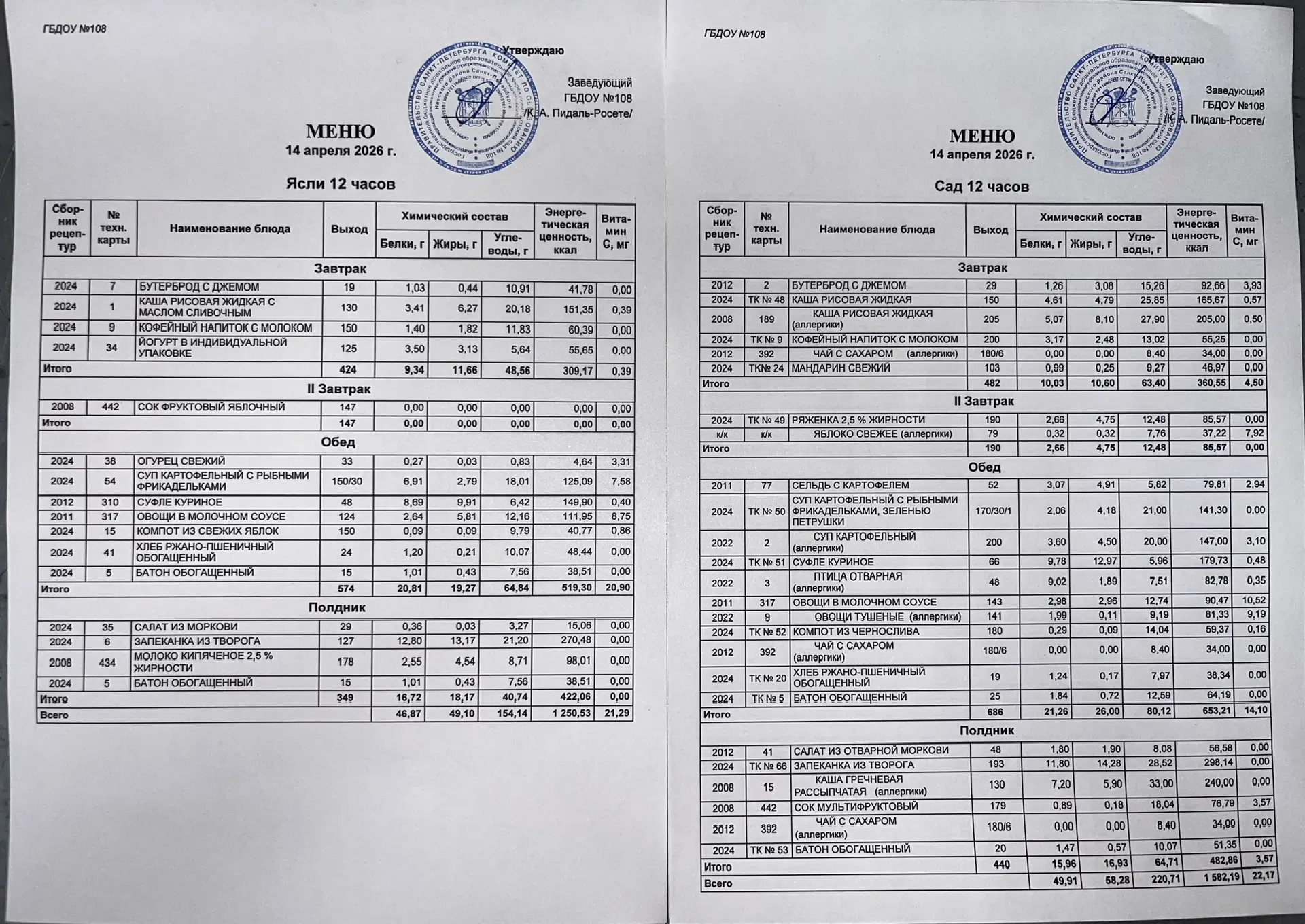 Организация питания в ГБДОУ детском саду №108 осуществляется в соответствии с действующем законодательством.
